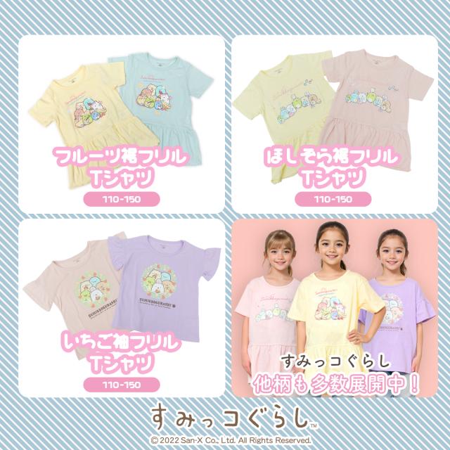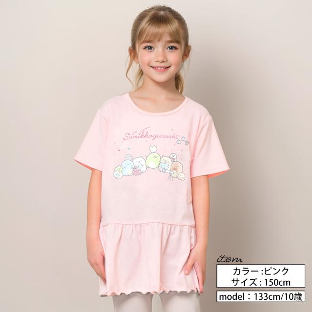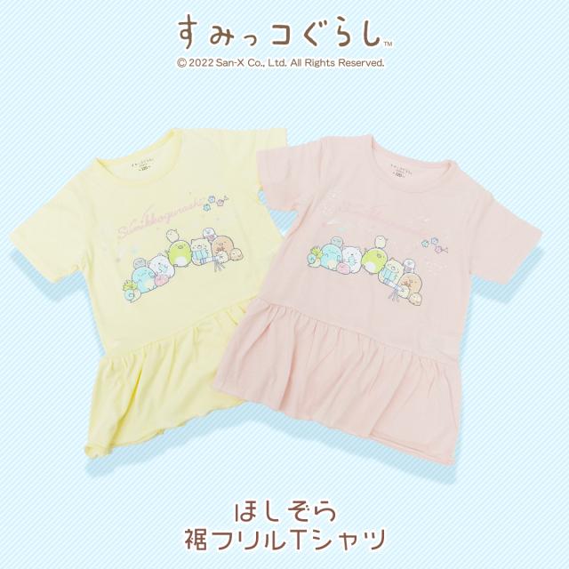 すみっコぐらし 22863062 Tシャツ 子供服 キッズ 半袖 GIRLS ほしぞら 裾フリル グッズ ジュニア すみっこぐらし 110 120 130 140 150