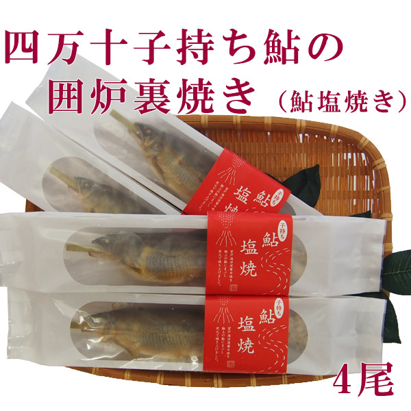 高知県四万十市産 四万十子持ち鮎の囲炉裏焼き(鮎塩焼き)4尾 ギフト用/冷凍 国産 アユ あゆ 贈答
