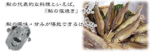 | 手間をかけることで旨みが凝縮され、香ばしさも加わった鮎の塩焼きが出来上がります。 【安心・安全】 焼鮎の味付けは、ミネラル豊富な海洋深層水塩のみ。 鮎の本来の風味と甘みをご堪能していただけます。 |