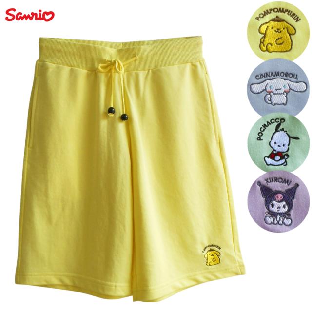 送料無料 サンリオ ショートパンツ ハーフパンツ 短パン レディース シナモロール クロミ ポチャッコ ポムポムプリン 刺繍 ヨガ フィットネス ジョギング ウォーキング プール ルームウェア ジム スポーツ サウナ スウェット 裏パイル地 部屋着 パジャマ リラックス