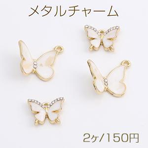 メタルチャーム エポ&ラインストーン付き 蝶 ゴールド(2ヶ)