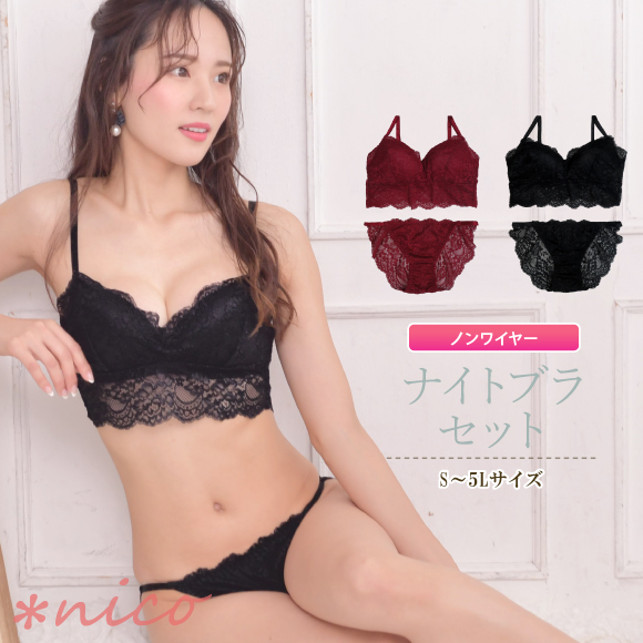 商品名(商品番号):S-5L ブラジャーノンワイヤー ナイトブラ &ショーツセット (j-4010-n)