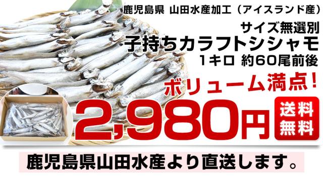 鹿児島県山田水産より発送 鹿児島県加工 サイズ無選別 子持ちカラフトシシャモ(アイスランド産)1キロ(60尾前後)※クール冷凍便 送料無料 ししゃも シーフード 【発送時期:カート内に記載しております】