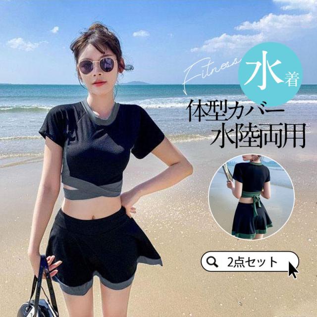 【水曜日まで!10%クーポン配布中】 水着 レディース 2点セット セパレート 体型カバー ワンピース 中学生 高校生 可愛い スイムウェア リゾート 夏 カジュアル クール 海 ビーチ