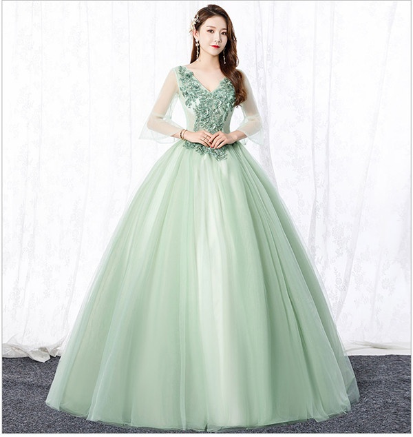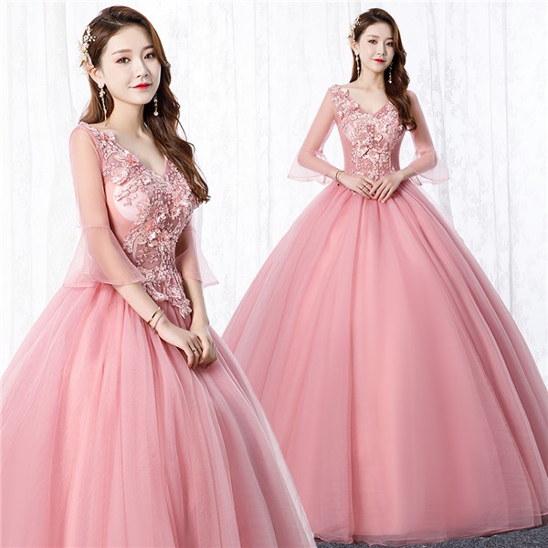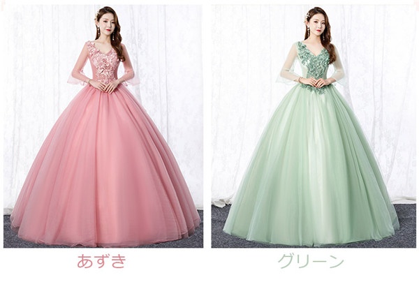 【サイズ有S/M/L/XL/2XL/3XL】パーティードレス 袖あり カラードレス ウェディングドレス ロングドレス 演奏会 ピアノ 発表会 ドレス 成人式 演奏会用ドレス ロング 大人 ステージ衣装 大きいサイズ ピンク 舞台衣装 コンサートあずき グリーンde013l6l6l9