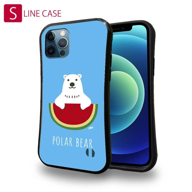 S-LINE ケース iPhone13 mini iPhone13 Pro Max iPhone12 Pro iPhone11 Pro iPhoneXs iPhoneXR Xperia 5 III Xperia 10 III Pixel 5a AQUOS sense6 かわいい しろくま 白熊 白クマ シロクマさんとスイカ(wakat)