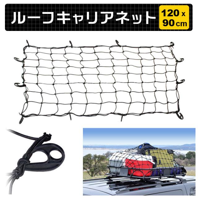 ルーフキャリア ネット 120cm×90cm ワイド カーゴネット ルーフネット ゴムネット 荷台用ネット ラゲッジネット トランクネット ルーフラックネット キャリアネット トラック 積荷 キャンプ 車中泊 荷崩れ防止 荷物固定 ワンボックス レジャー アウトドア ロープ 網