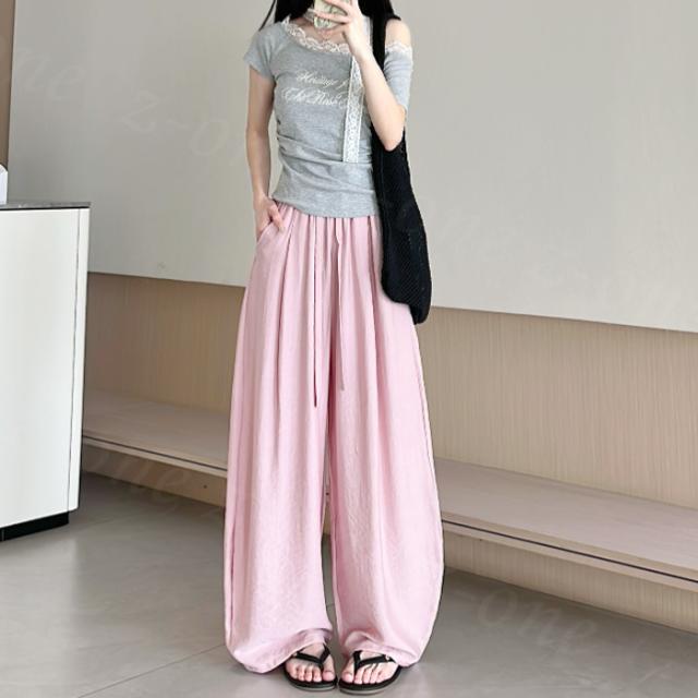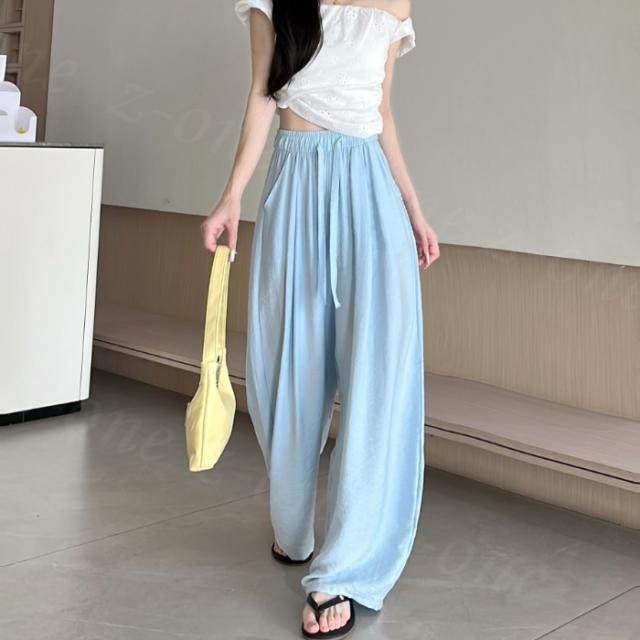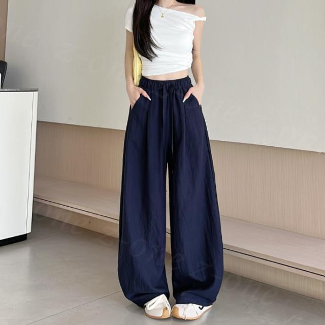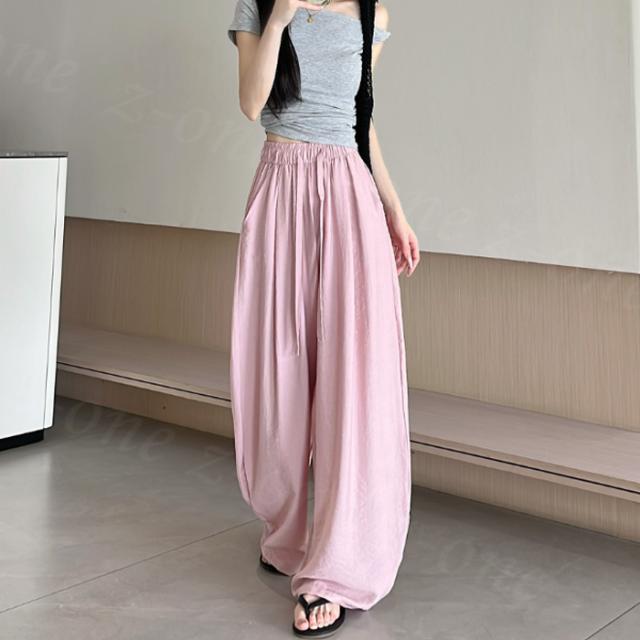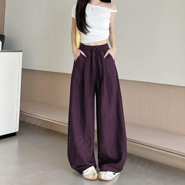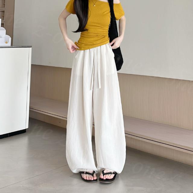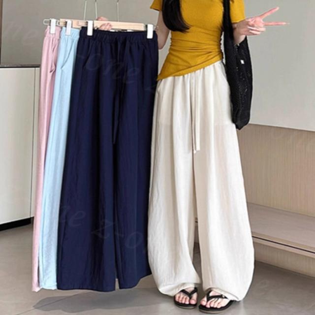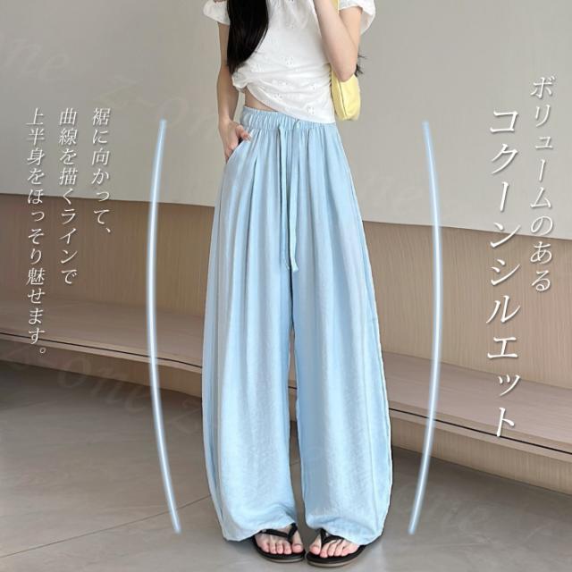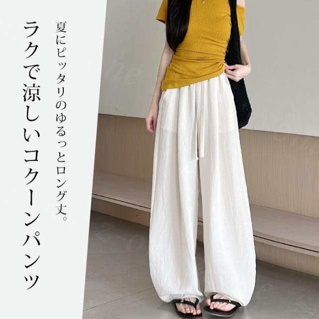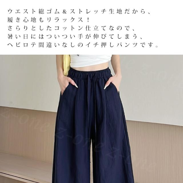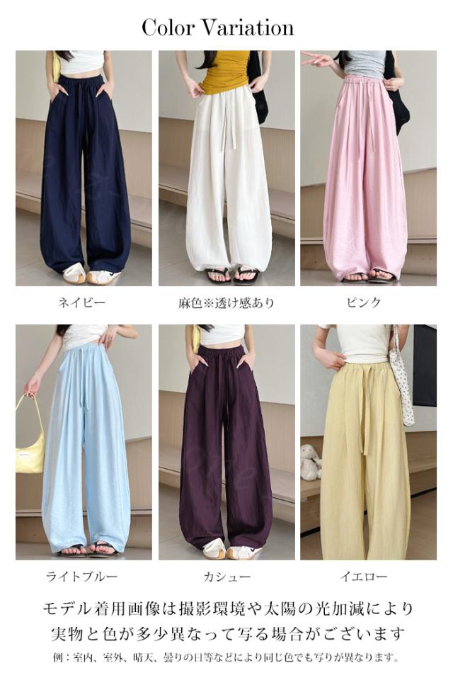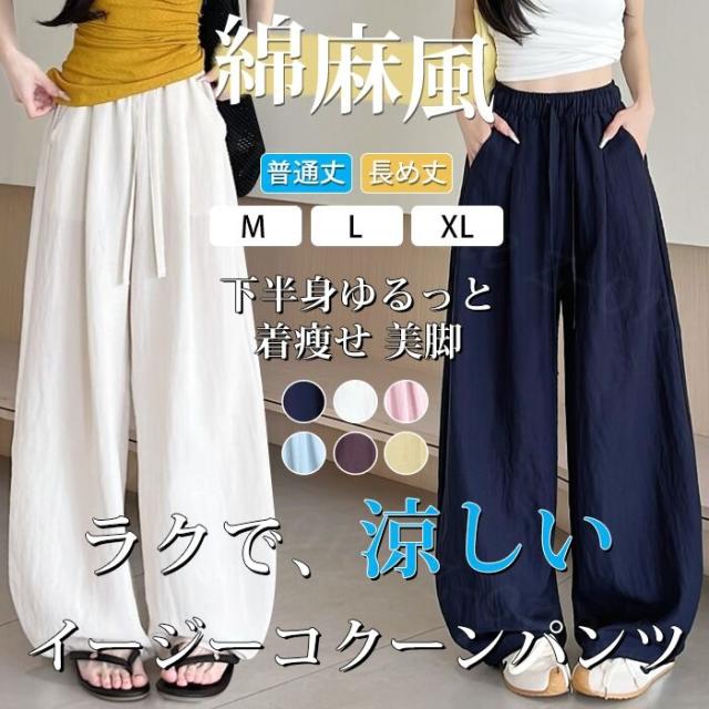 【1点1,350円!2点購入&クーポンで】ワイドパンツ 接触冷感 薄手 綿麻風 夏用 涼しい レディース さらさら 高身長 低身長 快適 ハイウエスト ボトムス 美脚シルエット すぼりパンツ スウェットパンツ ウエストゴム 楽ちん 太もも ゆったり パンツ ポケット 入学式 入園式