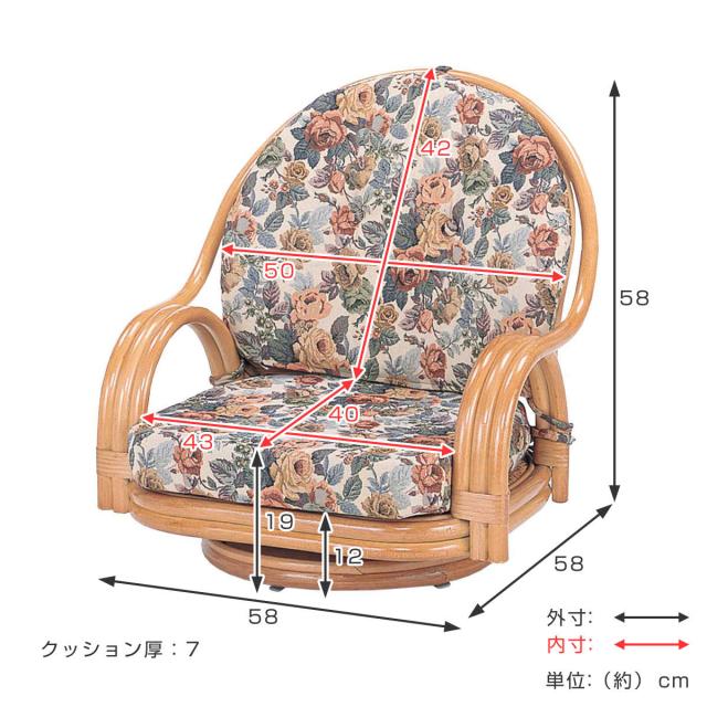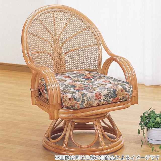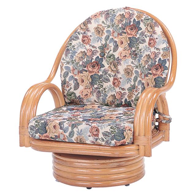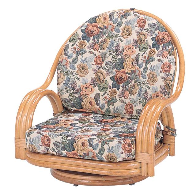 回転座椅子 ロータイプ ラタンチェア 籐家具 座面高19cm ( 回転式 座椅子 背もたれ付き 肘付き ラタン イス 座いす 花柄 和モダン リラックスチェア パーソナルチェア 籐回転椅子 )