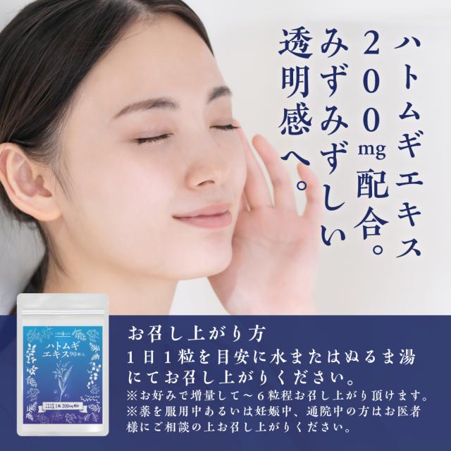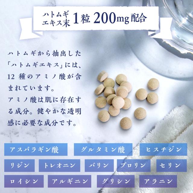 ハトムギエキス1粒あたり200mg配合の高濃度ハトムギサプリ。