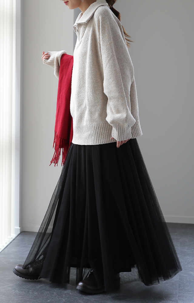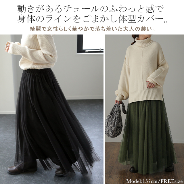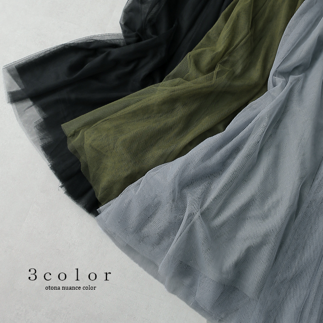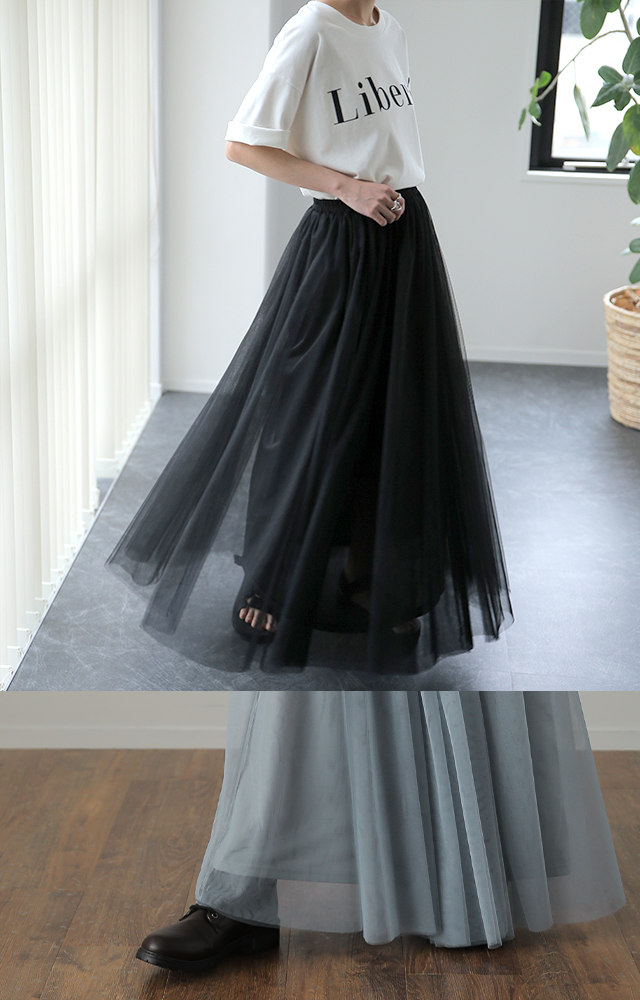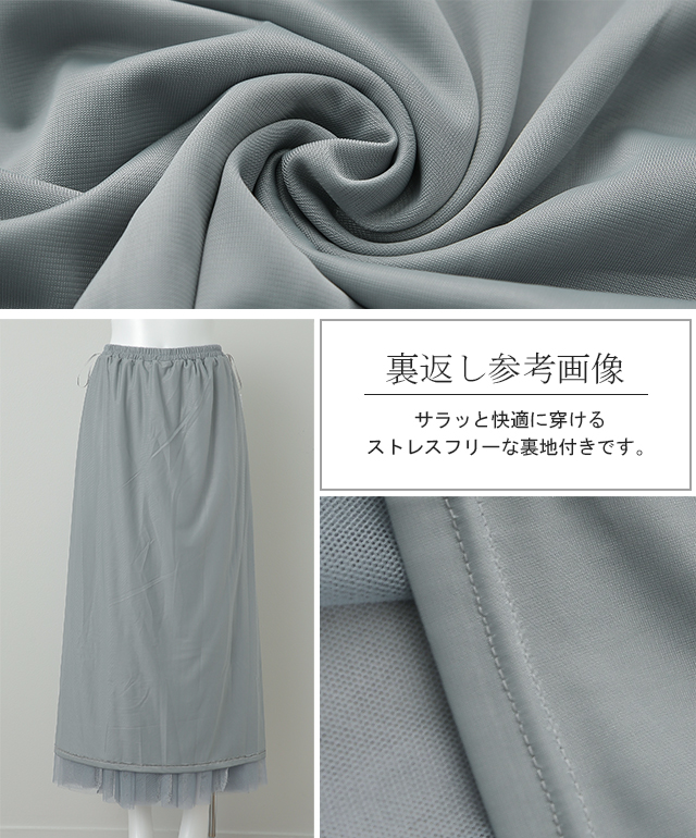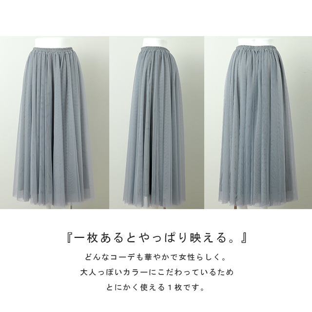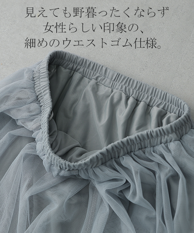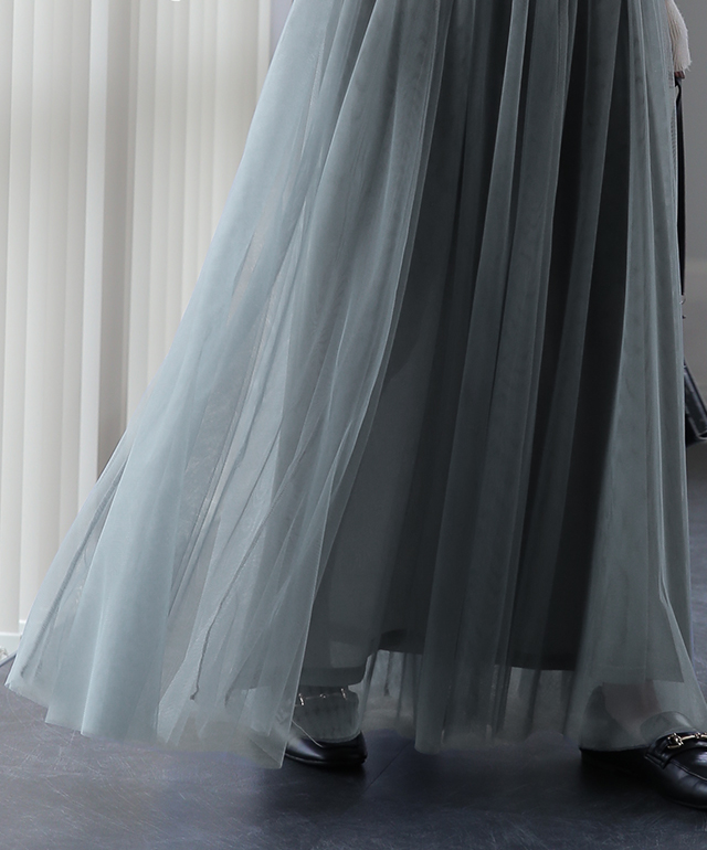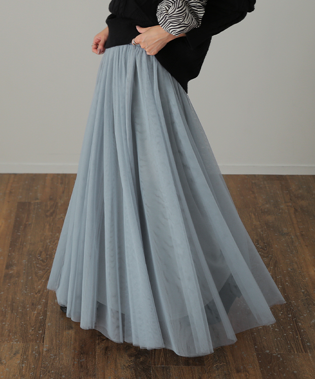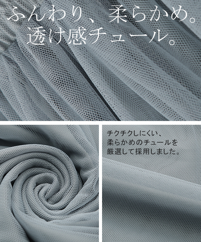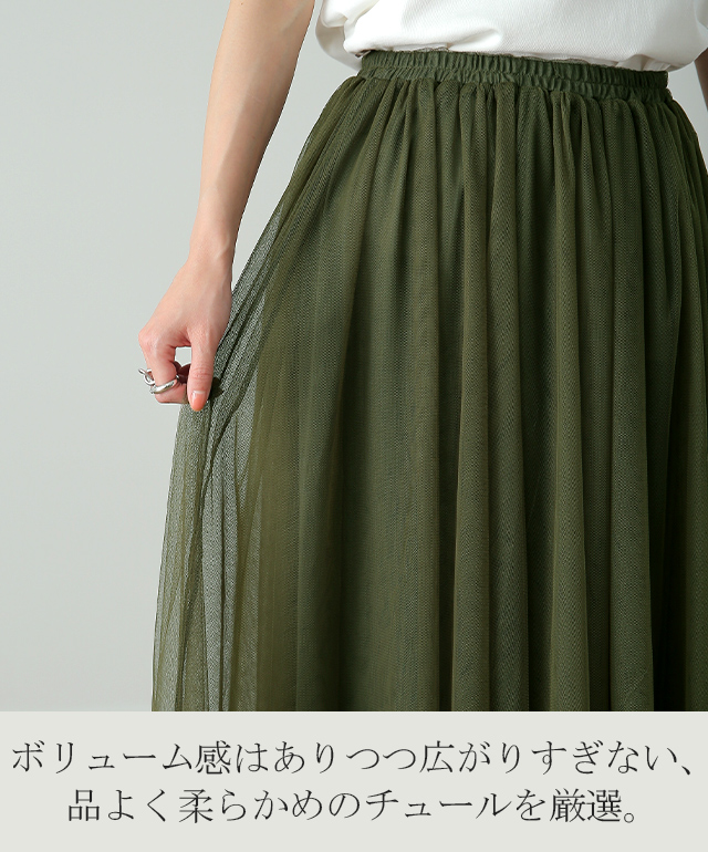 ふんわりエアリーなチュールを重ねて程よく落ち感のあるシルエットになっています。