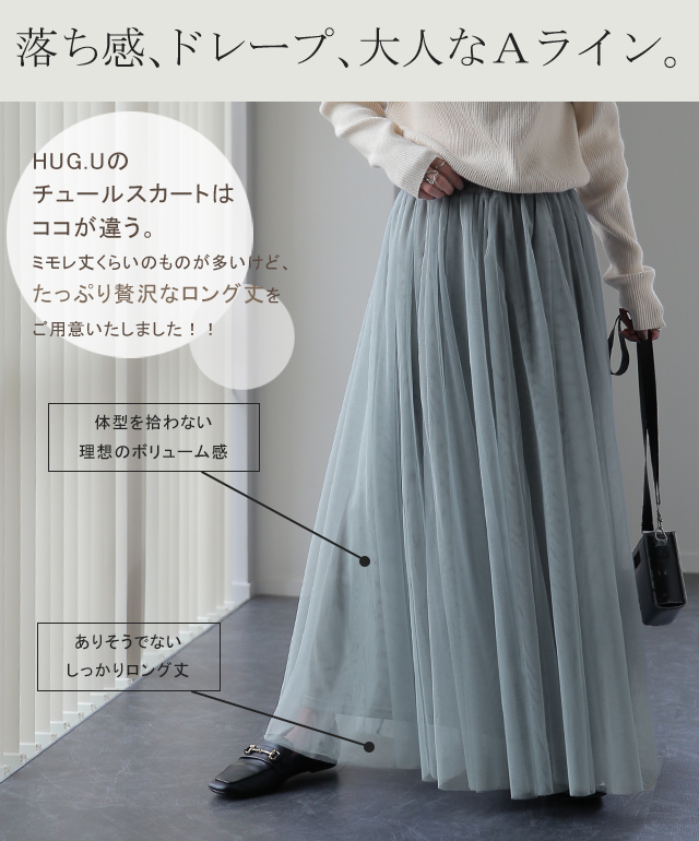 スカート チュチュスカート チュールスカート ロング ロングスカートボトムス プリーツスカート マキシスカート マキシ マキシ丈 ロング丈 チュール ふんわり ひざ下 Aライン Aラインスカート フレア フレアスカート シースルー シアー 透け感 重ね着 パニエ ペチコート 薄手 薄目 薄め 薄い 体型カバー 大きいサイズ プラスサイズ ビッグ ビック big ビックシルエット ビッグシルエット ビックサイズ ビッグサイズ オーバーサイズ オーバー 着痩せ 大き目 大きい 大きめ ゴムウエスト ゴムウェスト ウエストゴム ウェストゴム ゴム 裏地あり フリーサイズ フリー S M L LL 2L XL 3L XXL LLL パーティー パーティ 結婚式 二次会 ランチ デート お出かけ 衣装 舞台 演奏会 フェス リゾート ビーチ 海 旅行 飛行機カジュアル ナチュラル 大人カジュアル ベーシック オフィス オフィスカジュアル テレワーク リモートワーク リモート オンライン飲み会 おうち時間 無地 お家時間 着回し 母の日 プレゼント ギフト 贈り物 クリスマス シンプル 大人 大人カジュアル オトナ 女性 綺麗 綺麗目 きれい キレイ キレイめ キレイメ きれいめ 高見え 上質 上品 レディースファッション 腰まわりすっきり バレエ ガーリー 大人可愛い 甘辛 甘辛コーデ 20代 30代 40代 50代 おしゃれ お洒落 オシャレ 可愛い かわいい カワイイ カッコいい 格好良い カッコイイ 黒 ブラック グレー ブルーグレー アッシュブルー カーキ カーキー色 ブルー 水色 青色 青 緑 緑色 深緑 春 夏 秋 冬 春夏 秋冬 HUG.U HUGU ハグユー はぐゆー