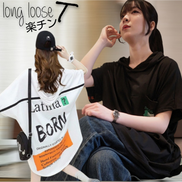 tシャツ ワンピース tシャツワンピ ロングTシャツ ワンピ レディース ティーシャツ フードTシャツ 夏ワンピ 半袖 ゆったり デザイン プリント パーカー 韓国 オルチャン ファッション 春 夏 秋 20代 30代 40代 送料無料 アウトレット