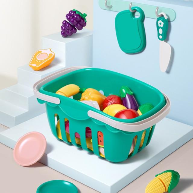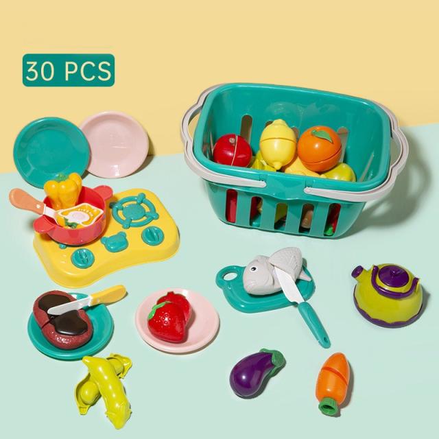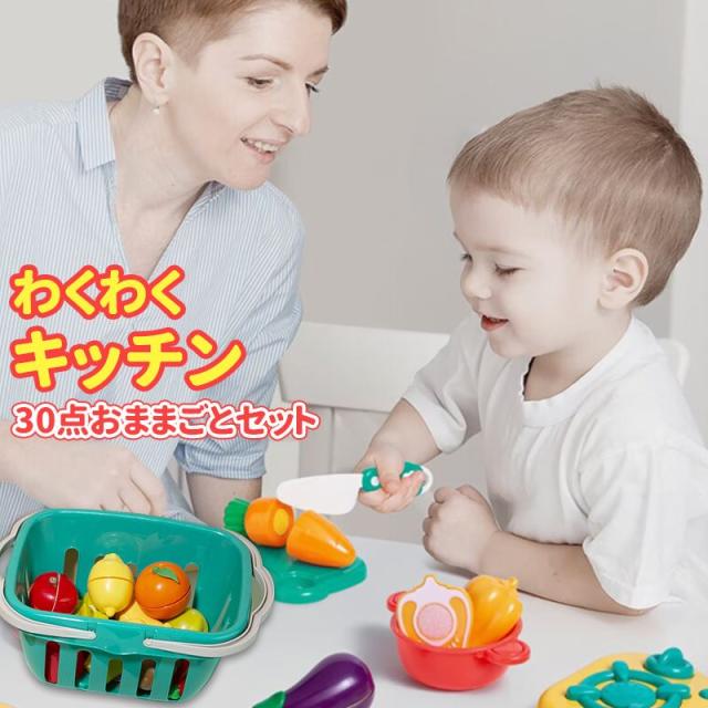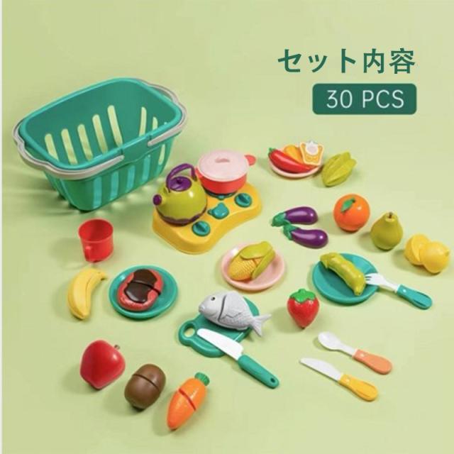 おままごとセット わくわくキッチン 30点 おもちゃ 収納 バスケット 切れる 野菜 果物 さかな ソーセージ まな板 包丁 ベビー 誕生日 プレゼント