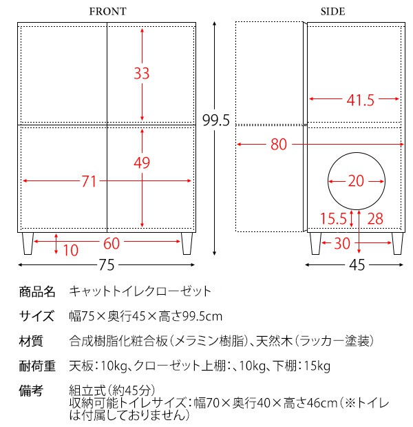| 寸法 | 幅75×奥行45×高さ99.5cm |
