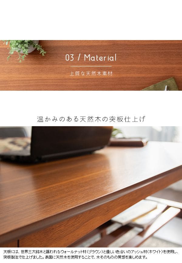 ■材質:天板/ウォールナット突板(ブラウン)、アッシュ突板(ホワイト)