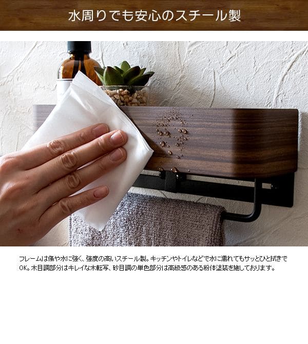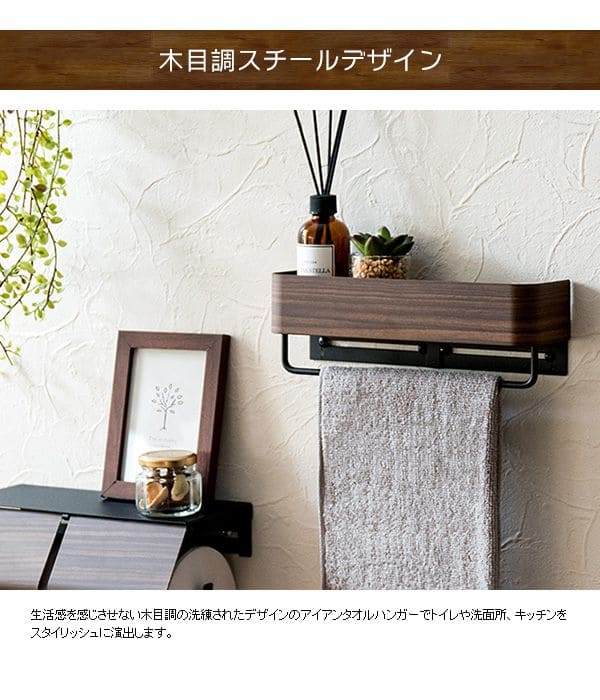 タオル掛け トイレ 壁付け 洗面所 壁 棚 タオルハンガー キッチン アイアン スリム 木目 収納 おしゃれ タオルバー 引っ掛け バー コンパクト 壁面 ホルダー