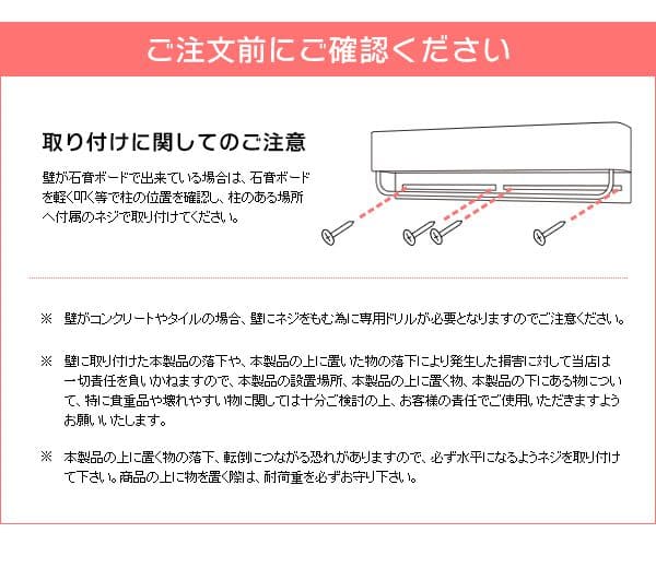 ■耐荷重:ハンガーバー:1kg、上棚:1kg