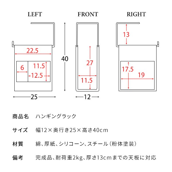 | 備考 | 完成品、耐荷重2kg、厚さ13cmまでの天板に対応 |