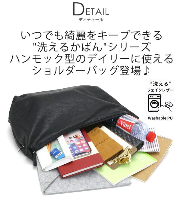 いつでも綺麗をキープできる"洗えるかばん"シリーズで、洗濯機で丸洗いできる、ワンショルダーバッグです。