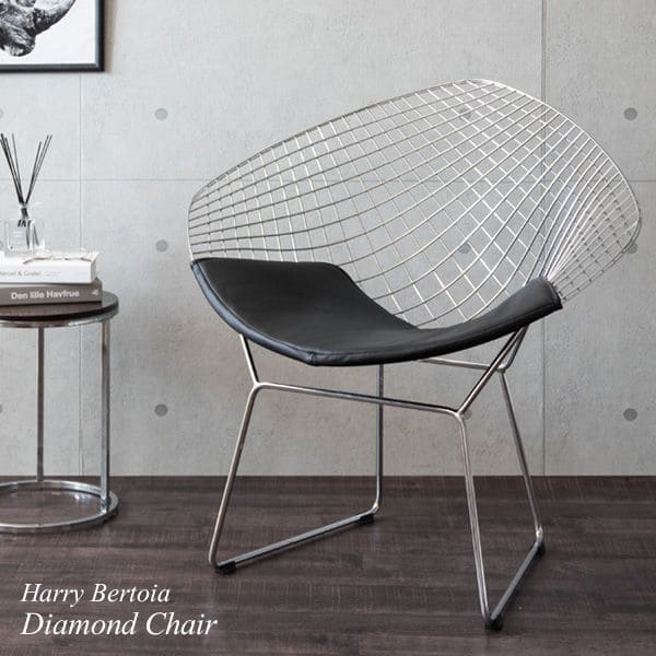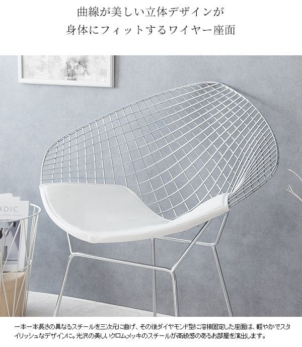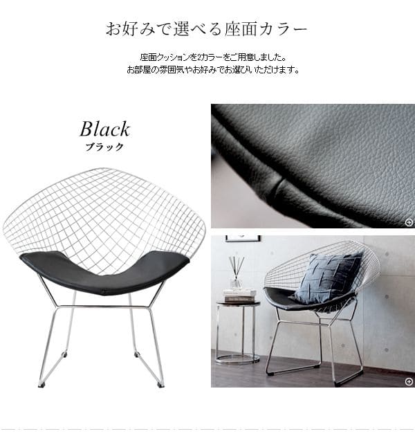 ワイヤーチェア リプロダクト 黒 白 椅子 ワイヤー チェア 高級 レザー スチール ゆったり インテリア用品 合皮 おしゃれ リビング ダイヤモンドチェア