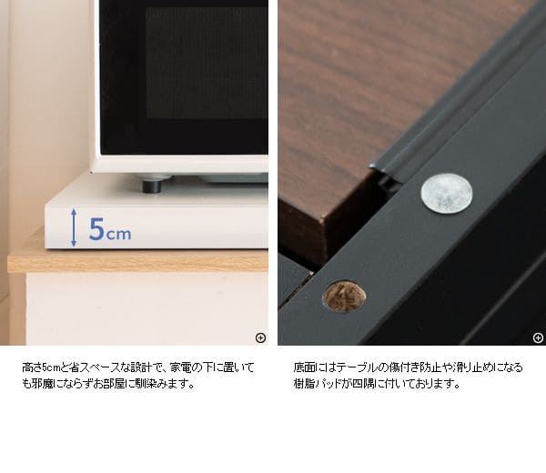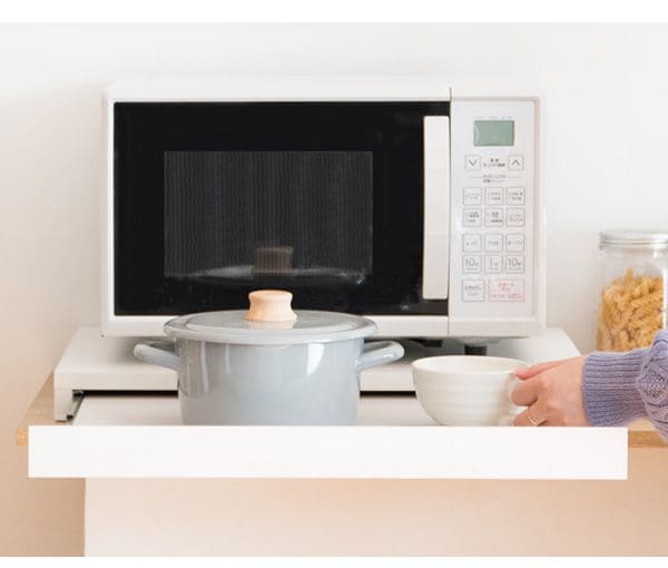 ※必ず本体天板に10Kg以上の電子レンジ等を上に置いてご使用ください。