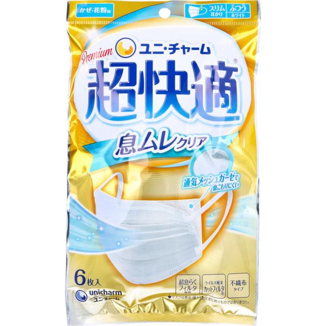 ユニ・チャーム 超快適マスク 息ムレクリアタイプ かぜ/花粉用 ふつうサイズ ホワイト 6枚入り X10パック