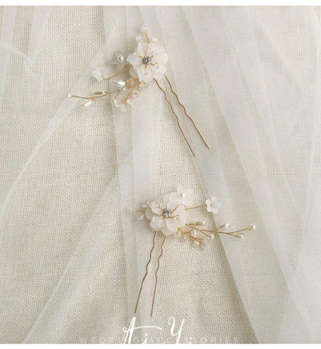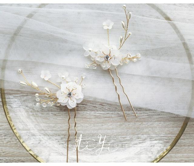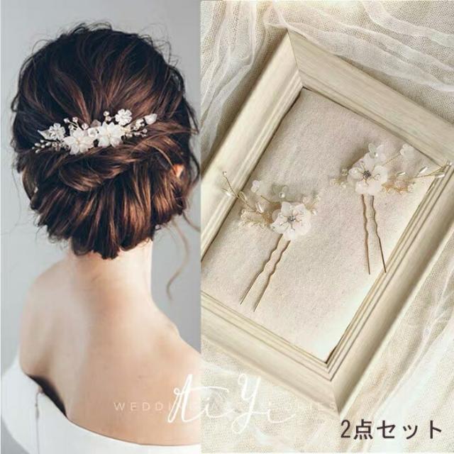 ヘッドドレス ウェデイング Uピン ヘアアクセサリー ヘアピン 2個セット子供 レディース ヘッドアクセ ヘアー ヘアアレンジ ブライダルジュエリー パール 小枝 花 髪飾り ヘア飾り 結婚式 花嫁 華やか 上品 ドレス 二次会 披露宴 発表会 成人式 七五三 写真撮影
