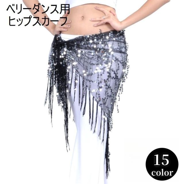 ヒップスカーフ ベリーダンス ダンス衣装 レディース 女性用 婦人用 腰飾り スパンコール フリンジ ブラック ホワイト 華やか
