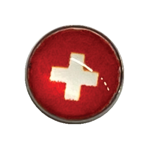 スイスの国旗をデザインした14ゲージのボディピアス用のネジ式の円盤状のキャッチの単品パーツ。