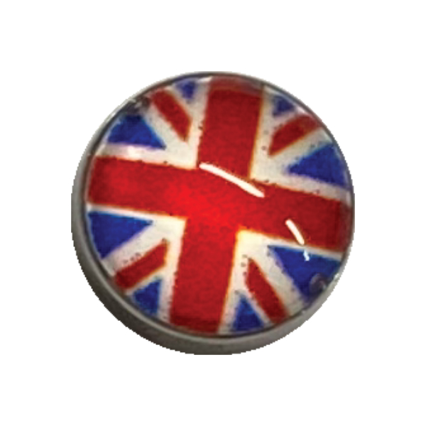 ストレートバーベルやカーブバーベル、サーキュラーバーベル、ラブレット、スパイラルリングといった14Gのボディーピアス使えるアウトターナルのネジタイプのディスク金具。ボールにネジ穴があるタイプの定番タイプは、ネジタイプのボディーピアスのキャッチをなくす人や組み替えてカスタムしたり交換用のボールとしても使えます。英吉利以外にも色々な国旗があります。