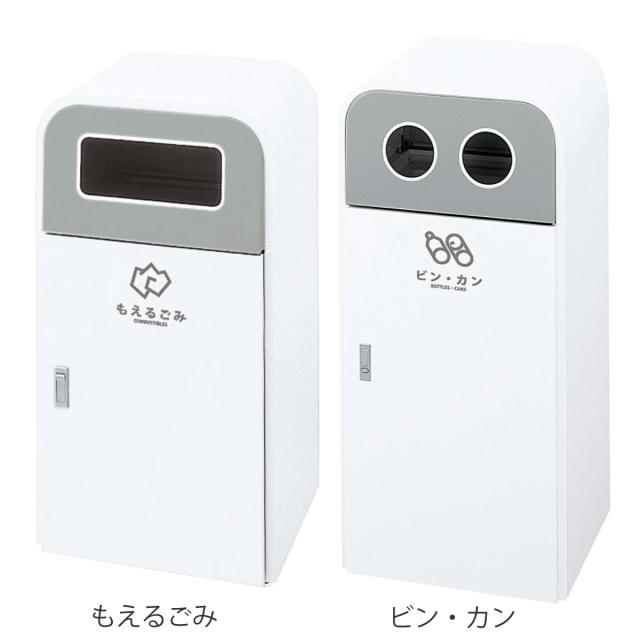 上部の角を丸めた優しいフォルムなので、文化施設やアミューズメント施設などによく合います。投入口は燃えるゴミに使える角穴と、ビン・カンを分別できる丸穴の2種類からお選びいただけます。