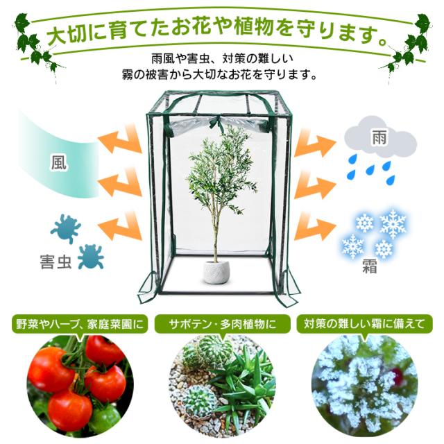 - 背丈のある観葉植物を入れるのにピッタリで、狭いスペースで設置でき室内でも邪魔にならず冬越しできます。