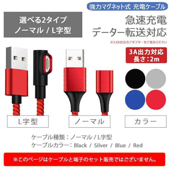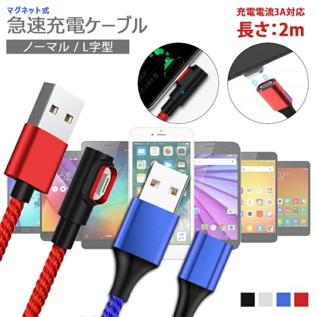 - 各色ケーブルのみ1本 2m 黒色 【各色ケーブルのみ1本 2m】3in1高速充電 データ転送 マグネット QC3.0 9V 対応 長さ2m アイフォン スマホ タブレット iPad 3A高出力 i モ...