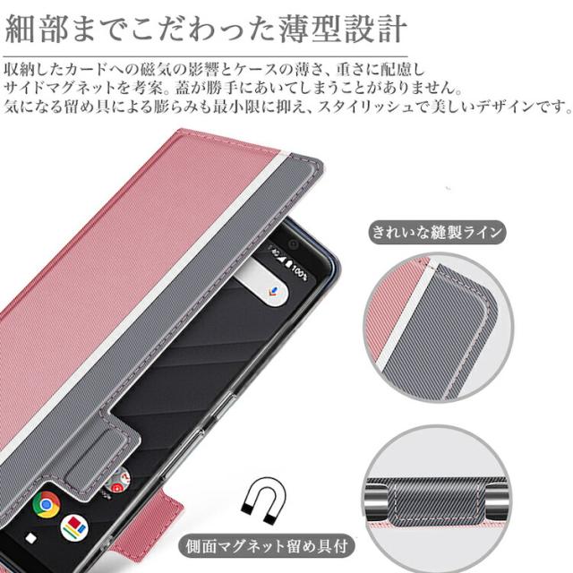 ■新デザインのツートンカラーが登場!スタイリッシュなデザインを活かした仕様になっています。 ハンドストラップ付きで取り外しが可能なので自分好みの物に付け替えも簡単です。 ■表カバーは防滴、防指紋効果のある肌触りの良いPUレザー素材。インナーケースは衝撃に強く割れにくいソフトTPU素材。細部までこだわったスタイリッシュかつ機能性抜群なケースです。 ■スタンド機能付きで動画視聴・ビデオ通話に便利です。内臓されたマグネットが位置を安定させる為ずれにくく、マグネット留め具付きの場合でも邪魔にならないよう短く設計されています。 ■カード収納が可能。収納したカードへの磁気の影響を考慮し、サイドマグネットを開発。サイドマグネットにより蓋が勝手に空いてしまうことがありません。 ■ロックボタンや音量ボタン・イヤホンはケースを閉じたままでも使用できますので、使い勝手も抜群です。 |