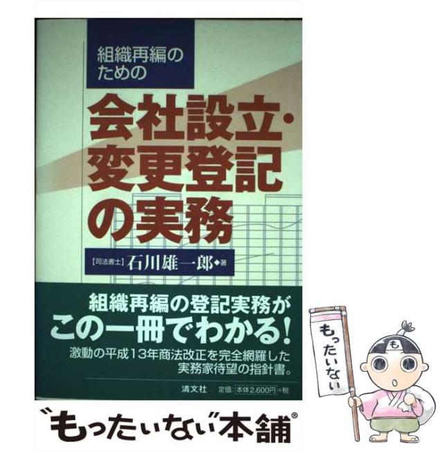 商品名:【中古】 組織再編のための会社設立・変更登記の実務 / 石川 雄一郎 / 清文社 [単行本]【メール便送料無料】