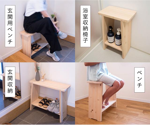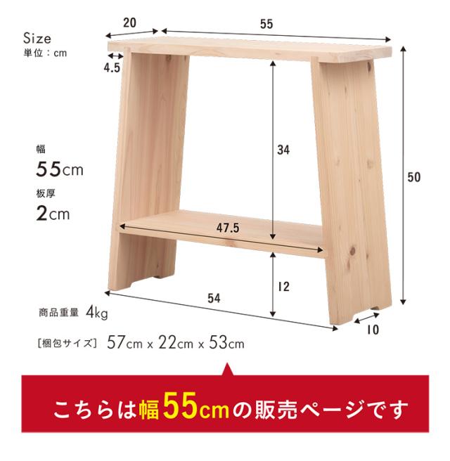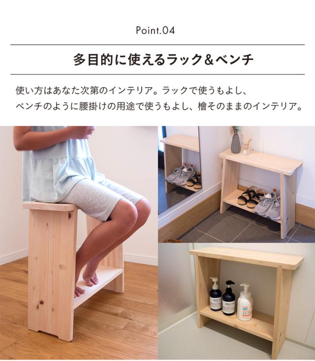 【3年保証/国産/完成品/無塗装/九州産檜】幅55cm 檜ラック 多目的ラック 檜椅子 ひのき 風呂いす 風呂椅子 マルチラック 絵本ラック 絵本棚 桧 おもちゃ収納 チェア チェアー ベンチ 木製 玄関 浴室 収納 スツール テーブル