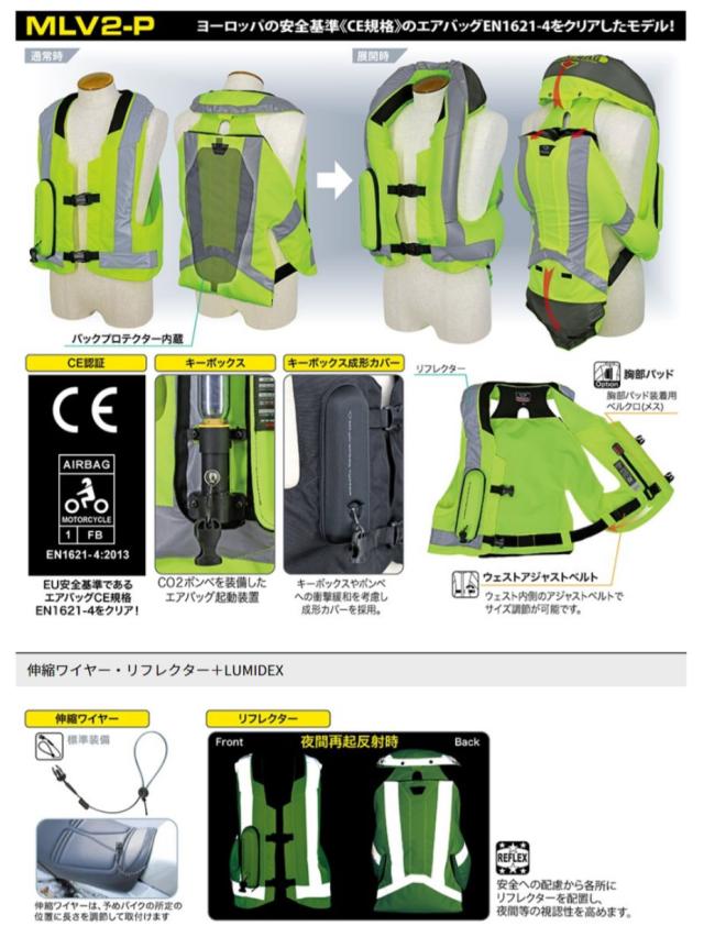 ★送料無料★hit-air MLV2-P 一体型エアバッグ・ハーネス エアバッグCE認証 (EN-1621-4)大型リフレクターの高視認性モデル! /無限電光株式会社
