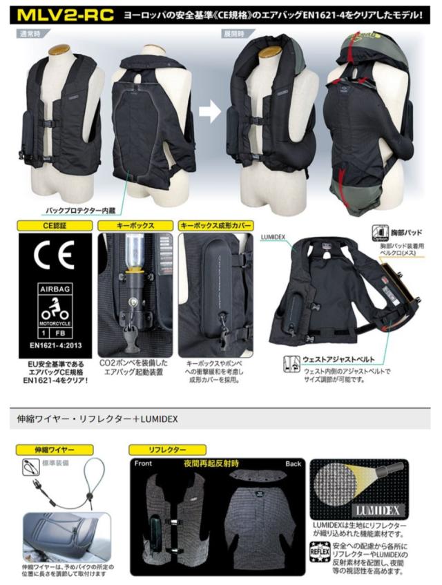 ★送料無料★hit-air MLV2-RC 一体型エアバッグ・ハーネス エアバッグCE認証 (EN-1621-4)全体が光るリフレクター素材を採用! /無限電光株式会社