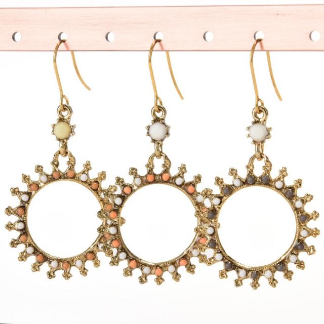 太陽のようなフレームに鮮やかなビーズを乗せたピアス。