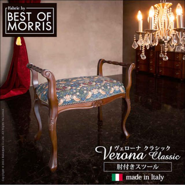ヴェローナクラシック BEST OF MORRIS 肘付スツール。イタリア製高級家具。芸術作品のような美しいフォルム。クラシックテイストなインテリアを演出。張地は、ウィリアムモリスの「いちご泥棒」です。