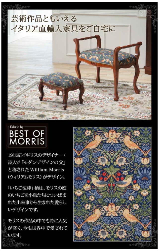 ウイリアムモリス いちご泥棒 肘付 彫刻 鋲留め スツール イス いす 椅子 チェア 腰掛 腰掛け 背もたれなし 背もたれ無し stool インテリア 家具 新築 新居 新生活 新社会人 就職 新学期 進学 入学 引越し 引っ越し 引越 転居 転勤 単身赴任 一人暮らし ひとり暮らし ファミリー インテリア 家具 必需品 必要なもの プレゼント ギフト 贈り物 新築祝い 引越し祝い リビング ダイニング 玄関 寝室 洗面所 サニタリー 来客用 予備 クラシック柄 クラシック調 クラシック風 クラシックテイスト クラシカル 上品 エレガント エレガンス 優雅 アンティーク風 アンティーク調 ヴィンテージ風 ヴィンテージ調 ビンテージ風 ビンテージ調