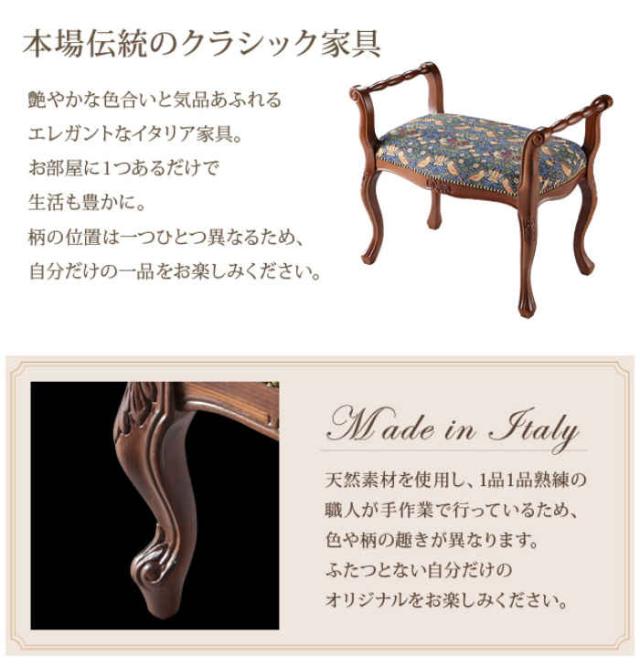 ■商品名:スツール 肘付 腰掛け 椅子 イス チェア イタリア製 木製 天然木 彫刻 鋲留め クラシックテイスト エレガント ウィリアムモリス いちご泥棒 ヴェローナクラシック BEST OF MORRIS
