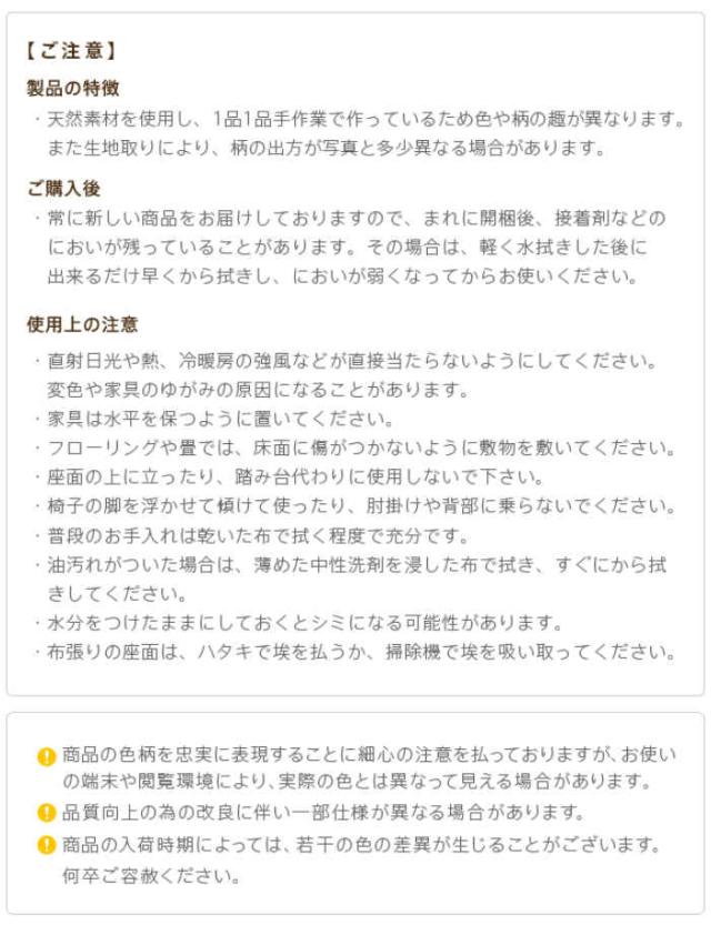 ■素材等:フレーム・脚部:ビーチ天然木、中身:ウレタンフォーム、コイルスプリング、張地:綿100%、塗装:ラッカー塗装、脚ウラ:フェルト