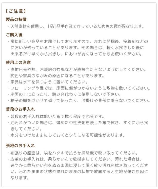 ■素材等:フレーム・脚部:ビーチ天然木、中身:ウレタンフォーム、コイルスプリング、張地:アクリル42%・ポリエステル32%・レーヨン26%、塗装:ラッカー塗装、脚ウラ:フェルト