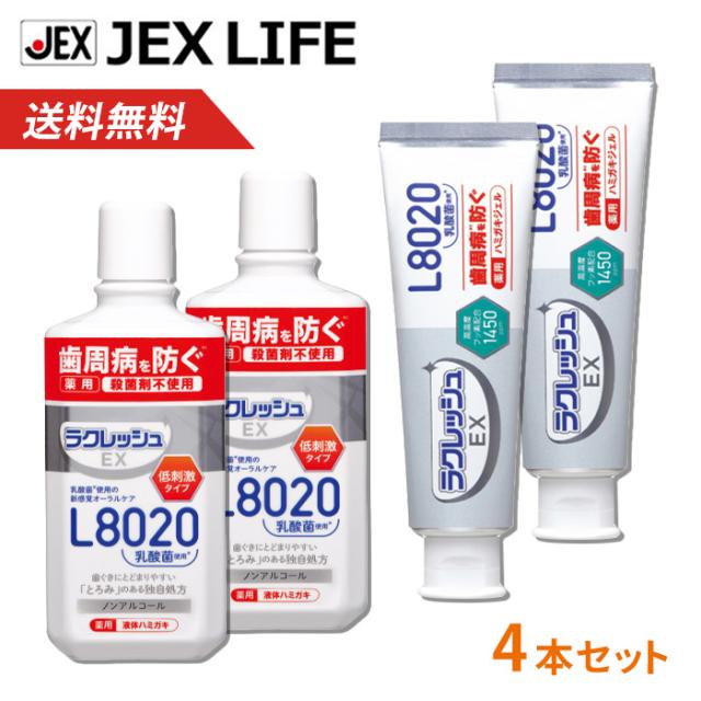 L8020乳酸菌使用 ラクレッシュEX薬用セット ハミガキジェル80g×2本 薬用液体ハミガキ(デンタルリンス)280ml×2本 日本製 医薬部外品 送料無料 メーカー直営