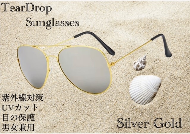 1 ティアドロップ サングラス ゴールド サングラス フレーム メガネ ミラーレンズ UV400 紫外線カット 男女兼用 メンズ レディース