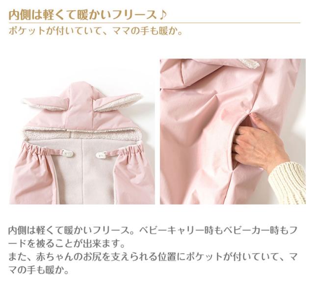 【特徴】ベビーキャリーに装着して寒さから赤ちゃんをガード!フード付きですので、赤ちゃんの全身を暖かく包みこみます。