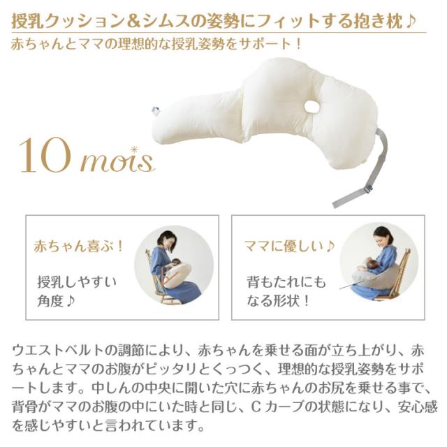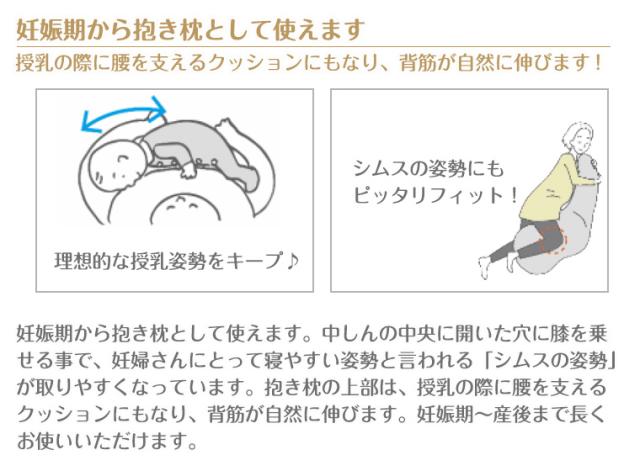 【特徴】理想的な授乳姿勢を角度でサポートする授乳クッション&シムスの姿勢にフィットする抱き枕です。