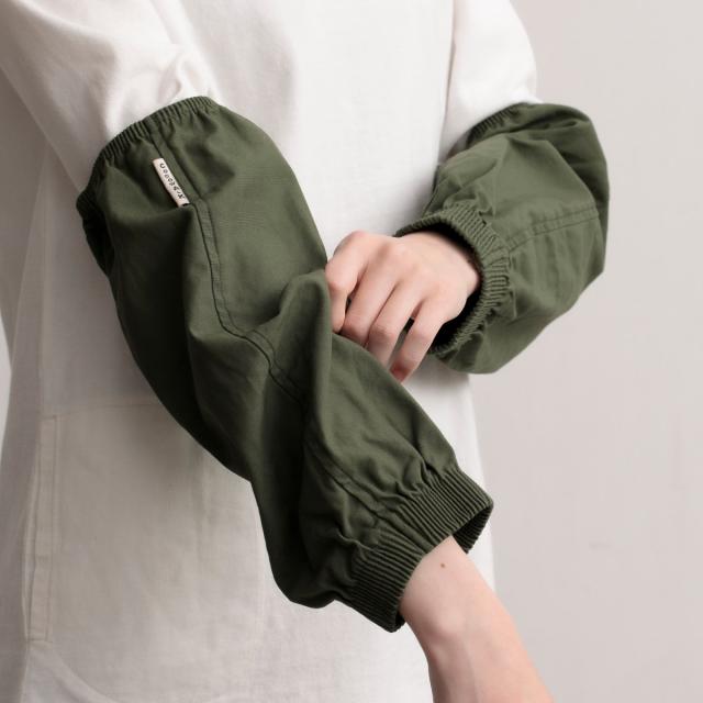 袖の汚れや濡れるのを防ぐアームカバーです。キッチンでの便利さはもちろん、ガーデニング作業の際にも活躍します。ベーシックなデザインなので、コーディネートしやすくおしゃれにお使いいただけます。